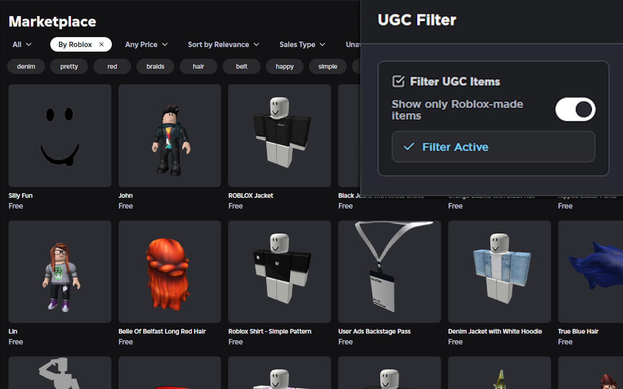 Automatically filter user-generated content (UGC) from the Roblox Catalog / Marketplace using Roblox's own filtering system!